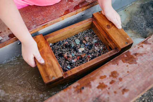 Campers can search for rocks, shells, and gemstones in our very own mine and panning sluice. Each panning kit contains an assortment of gemstones or fossils hidden among the sand!